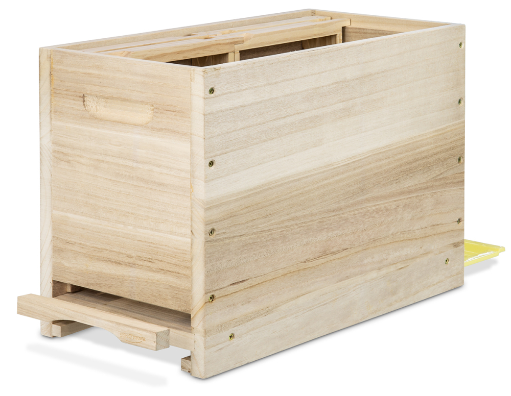 für 12 Rähmchen Dadant US Vertikal von 257 x 285 mm, zusammengesteckt ergibt sich das Maß Dadant US Brutraum von 482 x 285 mm. Lieferung mit Edelstahl Lüftungsgitter, Fluglochkeil und Bodenschieber