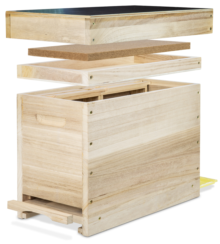 eine Bodenzarge für 12 Dadant US Vertikal Multi Brutraumrähmchen Art-Nr. 3434. Lieferung mit Edelstahl Lüftungsgitter, Fluglochkeil und Bodenschieber