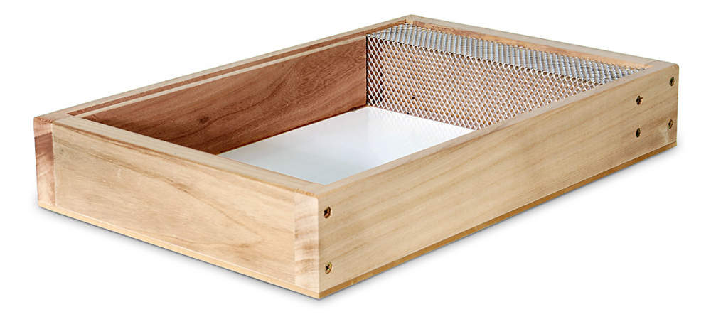 geleimt und verschraubt, mit seitlichem Aufstieg, Inhalt 5 Liter, Gewicht ca. 1,5 kg Wir empfehlen den Innenanstrich mit Bottichlack Art. 2127 oder ApiDana® Futterzargen Lack Art. 21275