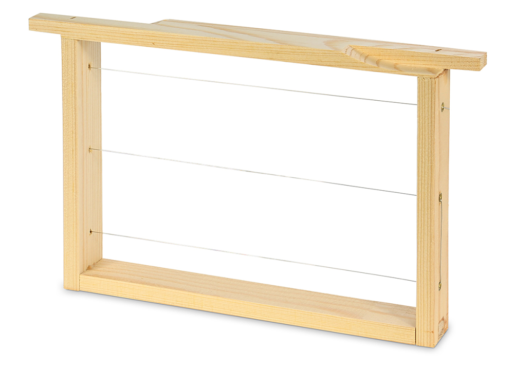 mit geraden Seiten, waagerecht gedrahtet, 6-fach geöst Holzstärke: Oberträger 10 mm, 254 x 159 mm Aufgrund der Spezialfräsung können zwei Rähmchen zusammengesteckt werden und ergeben dann ein Oberträgermaß von ca. 470 mm. Passend für Zander oder Dadant-Blatt Beuten können so Brut oder mit einer Königin besetzte Waben einfach umgehangen werden. Preis pro Rähmchen
