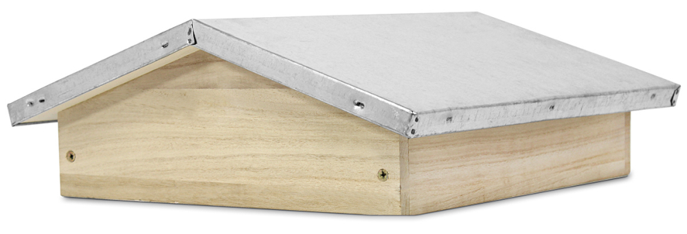 massiv und aus astfreiem Holz. Mit verzinkter Blechhaube und umlaufendem Dachüberstand. Besonderheit: Die Blechabdeckung ist aus einem Stück hergestellt und nicht durch eine Mittelnaht durchtrennt. Außenmaß 34 x 35 cm, Höhe 13 cm, Gewicht ca. 2 kg