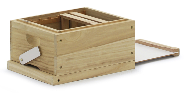 mit Bodenschieber, Lüftungs- und Varroagitter, fester Anflugnase, verschließbarem Flugloch, zwei Griffmulden, Außenfalz und zwei innenliegenden Holzrechen, passend für sieben Junior Rähmchen. Höhe 15,5 cm, Gewicht ca. 1,5 kg Lieferung ohne Rähmchen.