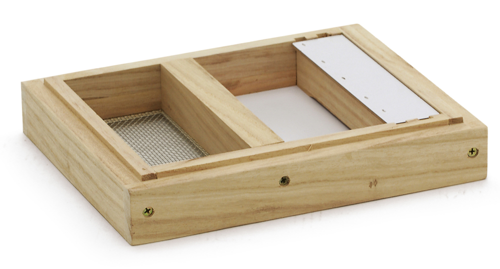 geeignet für ca. 1 Liter flüssiges und 1 kg festes Futter durch Zwei-Kammern-System. Eine Kammer mit Edelstahlgitter, die andere mit seitlichem Aufstieg und Holzwinkel, Höhe 4,5 cm, Gewicht ca. 0,6 kg Wir empfehlen den Innenanstrich mit Bottichlack Art. 2127 oder ApiDana® Futterzargen Lack Art. 21275