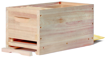 für 12 Rähmchen Mini Plus von 251 x 159 mm oder 6 Rähmchen Dadant US von 482 x 159 mm, mit Edelstahl-Lüftungsgitter, Fluglochverschlusskeil und Bodenschieber