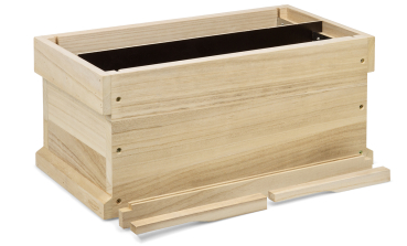 für 6 Rähmchen Zander von 477 x 220 mm mit Trennschied, Laufschiene für Trennschied und zwei Fluglochverschlusskeilen