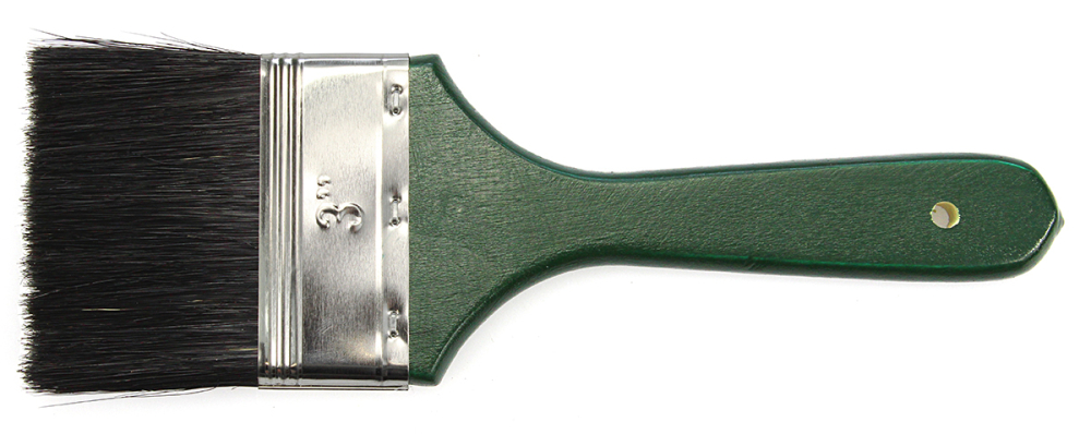 schwarze Nylonborsten in Weißblechzwinge, Breite ca. 7,5 cm, Holzstiel mit Aufhängeloch
