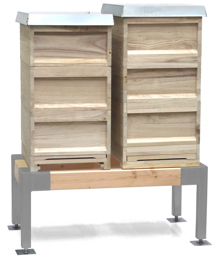 zur Aufstellung von zwei Beuten, z.B. Franken, Segeberger, Dr. Liebig, Herold oder Langstroth. Massive Ausführung bestehend aus vier pulverbeschichteten Metallstützen mit verzinkten Standfüßen. Diese sind höhenverstellbar, somit lässt sich die richtige Arbeitshöhe einstellen und Unebenheiten im Gelände können ausgeglichen werden. Außenmaße: L: 1000 mm, B: 550 mm, H: 410 - 520 mm. Die vier Einsteckhölzer aus Massivholz haben eine Holzstärke von 5 cm. Gesamtgewicht des Bocks ca. 15 kg