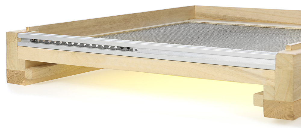 Mehrzweck Flugloch-Einsatz aus Aluminium. Geeignet als Lüftung, Pollenfänger, Mäuseschutz, Räubereischutz oder als Fluglochverkleinerung mit 3 Schiebeleisten zum gewünschten Einsatz. Passend z.B. für den Dadant US Varroaboden. Höhe 20 mm, Breite 20 mm, Länge 445 mm