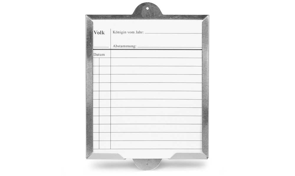 Fünf weiße Notiz-Kärtchen im Aluminiumrahmen