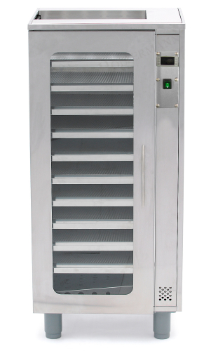 aus Volledelstahl, mit Glastür, Warmluft-Umwälzung durch Gebläse, Thermostat, Temperaturanzeige und Kontrolllampe. Durch die mitgelieferten zusätzlichen 10 Einlegeböden auch als Pollentrockner nutzbar, 230 V / 1000 W. Lichtes Innenmaß: ca. 85 x 36 x 36 cm, Außenmaß: ca. 117 x 55 x 47 cm