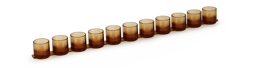 zur Hilfe bei der Gelée Royale Ernte, passend zum Erntehelfer Art. 4970. Stange mit 11 Näpfen aus braunem Kunststoff. Höhe ca. 1 cm, Gesamtlänge ca. 13 cm
