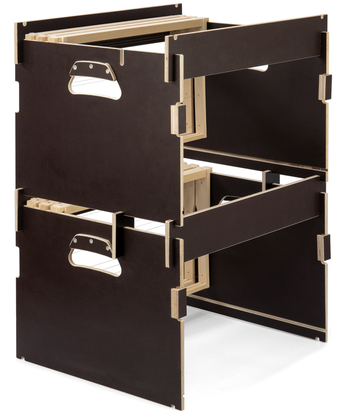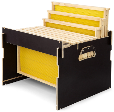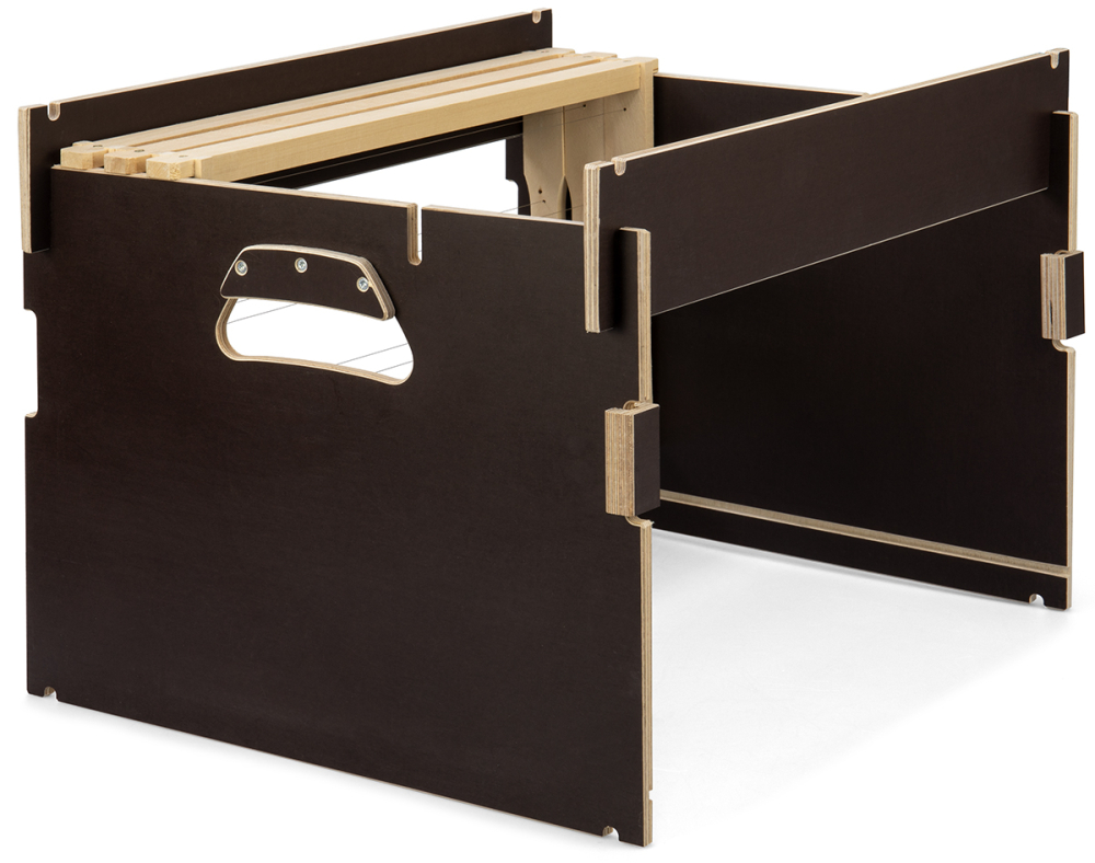handliches und stapelbares Waben-Transportsystem für bis zu 13 Rähmchen Dadant US Brutraum. Hergestellt aus brauner Siebdruckplatte erfolgt die Lieferung in Teilen mit Aufbauanleitung und zwei Stoppern zum Fixieren der Rähmchen während des Transports