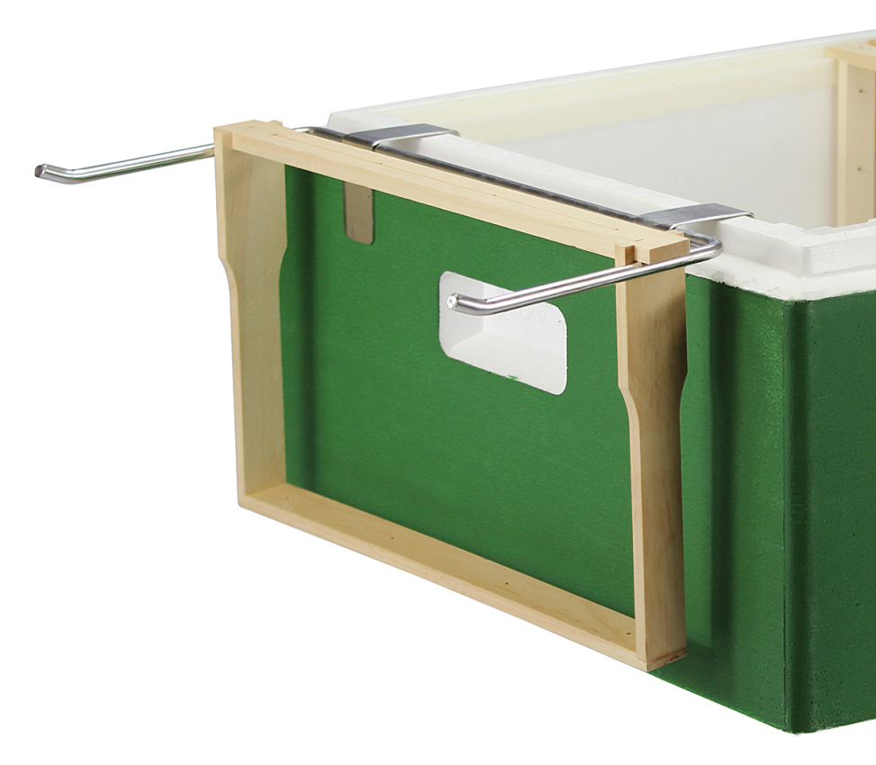 zur seitlichen Ablage von bis zu vier Rähmchen, passend für alle Segeberger Zargen von Halb- bis Anderthalb. komplett aus Edelstahl