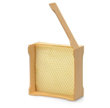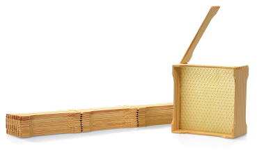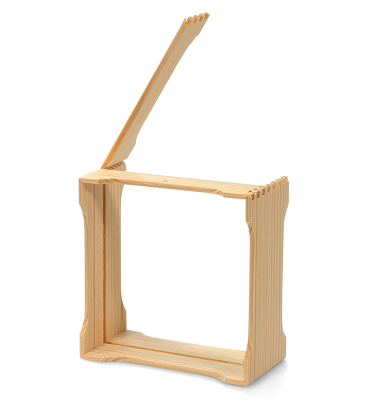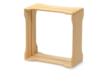 aus Holz mit Wachsnut zum Einbringen einer kleinen Mittelwand (nicht im Lieferumfang enthalten). Das Außenmaß beträgt 108 x 108 x 48 mm. Set bestehend aus 10 Rähmchen