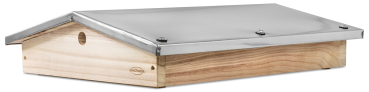massiv und aus astfreiem Holz. Mit Edelstahl-Haube und umlaufendem Dachüberstand. Besonderheit: Die Edelstahl-Abdeckung ist aus einem Stück hergestellt und nicht durch eine Mittelnaht durchtrennt. Außenmaß 57 x 47 cm, Höhe 13 cm, Gewicht ca. 3,5 kg