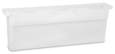 gefertigt in einem Stück aus lebensmittelechtem Kunststoff, mit geriffelten Innenwänden für einen leichteren Aufstieg, konisch und stapelbar, Größe ca. 445 x 159 mm Breite ca. 60-80 mm, Oberträger 477 mm Gewicht 350 g, Füllmenge bis zu ca. 3,4 l spülmaschinenfest Design registriert beim DPMA und gesetzlich geschützt