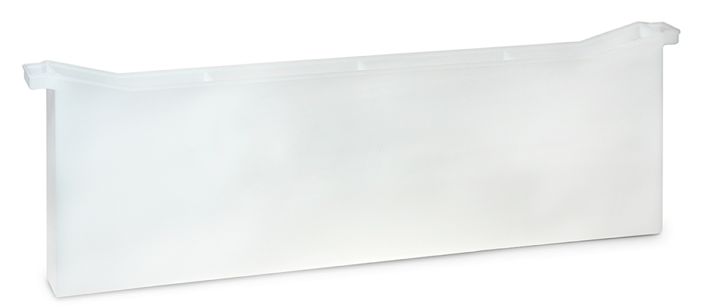 gefertigt in einem Stück aus lebensmittelechtem Kunststoff, mit Kammern und leicht angerauhten Innenwänden für eine Aufstiegsunterstützung. Größe ca. 430 x 145 mm, Breite 35 mm Oberträger ca. 470 mm, Gewicht 220 g Füllmenge bis zu ca. 1,5 l, spülmaschinenfest Design registriert beim DPMA und gesetzlich geschützt