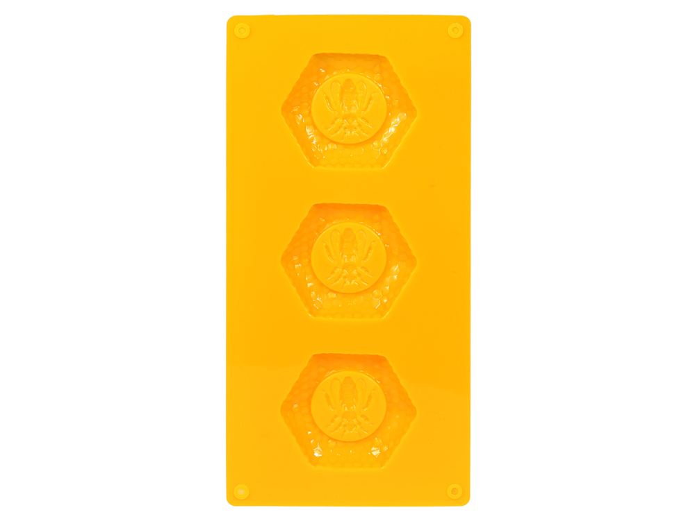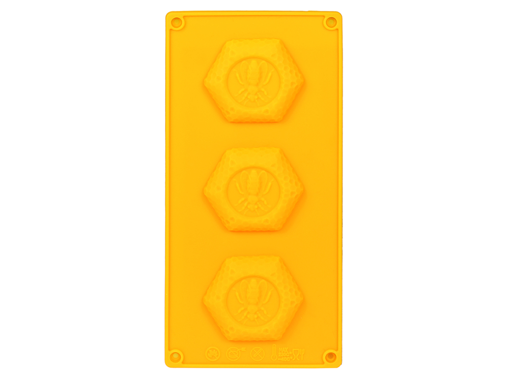 aus 100 % Silikon, für 3 Wabenformen. Zum Gießen von Seifen, auch geeignet für Bienenwachs, Schokolade oder Kuchenteig. Temperaturbeständig mindestens von -40°C bis +120°C Außenmaß: ca. 26,5 x 13 cm