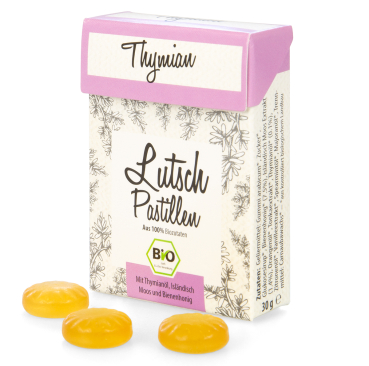 Das ätherische Öl des Thymians verleiht den Pastillen in Kombination mit Isländisch Moos ihre wohltuende Kraft, die durch naturreinen Bienenhonig unterstützt wird