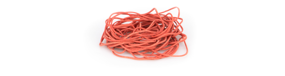aus Naturkautschuk dehnfähiges, spannkräftiges und haltbares Material und dadurch häufig wiederverwendbar In Fundgrube, da Sonderserie
