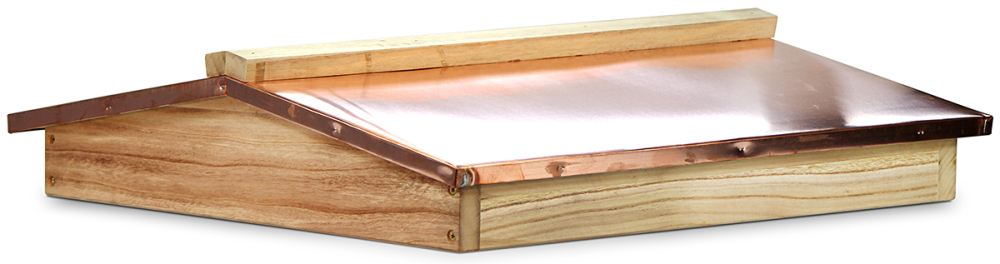massiv und aus astfreiem Holz und mit umlaufendem Dachüberstand mit wetterfestem Kupferbeschlag und Firstleiste. Außenmaß 60 x 60 cm, Höhe 15 cm, Gewicht ca. 6,5 kg In Fundgrube, da 2. Wahl
