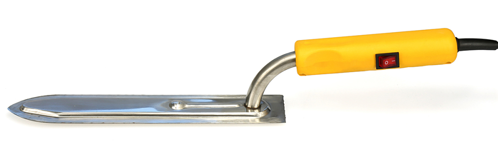 mit 26 cm langer, beheizter Schneide, An- und Aus-Schaltung seitlich am Griff, sowie eingebautem Thermostat, 230 V / 180 W Nach ElektroG registriert unter Marke Imgut® In Fundgrube, da 2. Wahl, Funktion gegeben