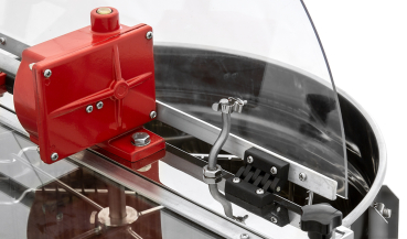 Handantrieb mit Getriebe aus Stahlzahnrädern, Rückdruckbremse und polierter Edelstahltraverse