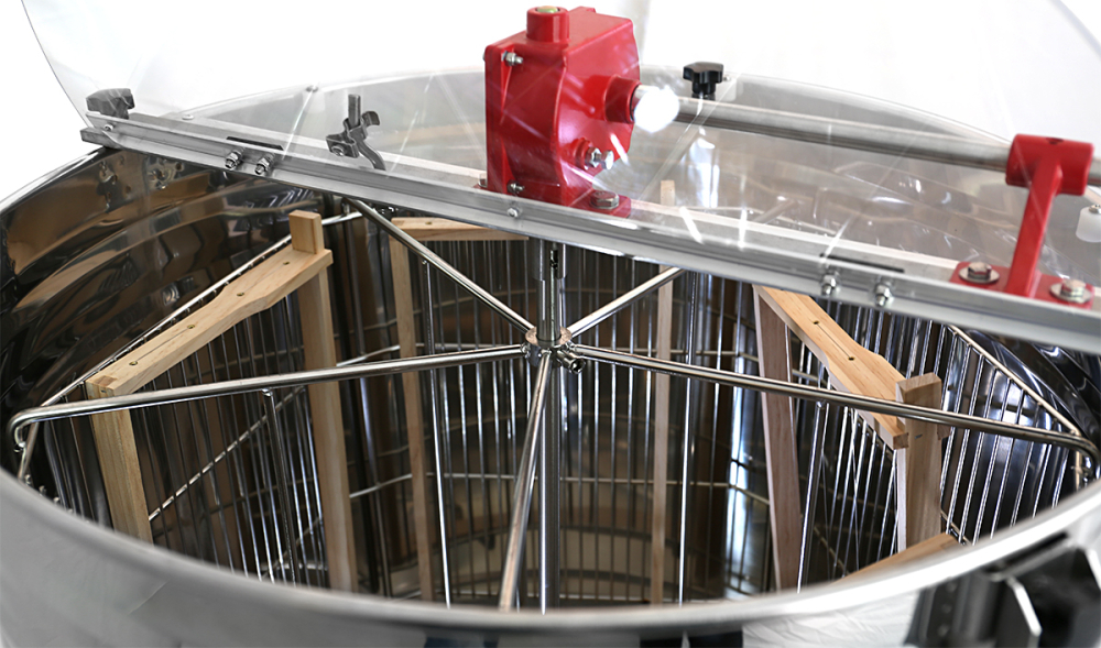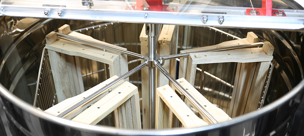 "Doppel-Nutzen-Korb" aus Edelstahl für einen Radialbetrieb von bis zu 10 Rähmchen mit einer Höhe ab 159 bis zu 295 mm oder Tangentialbetrieb von bis zu 5 Rähmchen mit einer Höhe von bis zu 300 mm. Somit passend für Normalmaß, Zander, Langstroth, Dadant US und Dadant Blatt und deren Honigraumrähmchen