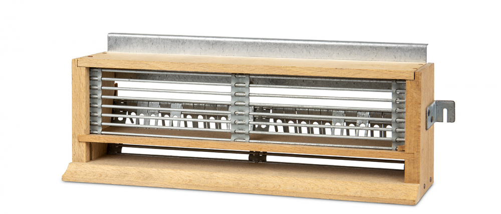 aus Holz, mit Absperrgitter, Königinnen-Kläppchen und Metallschieber. Klassisches Gerät zur Schwarmverhinderung und Königinnensicherung. Länge: ca. 245 mm, Tiefe: 55 mm, Höhe: 80 mm In Fundgrube, da Sonderserie