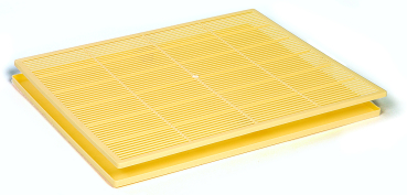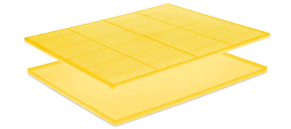 Diagnoseschale aus lebensmittelechtem Kunststoff, bestehend aus Unterschale und Schutzroste. Größe 33,5 x 28,5 cm - wird in der Fachliteratur auch als "Windel" oder "Tasse" bezeichnet - In Fundgrube, da 2. Wahl