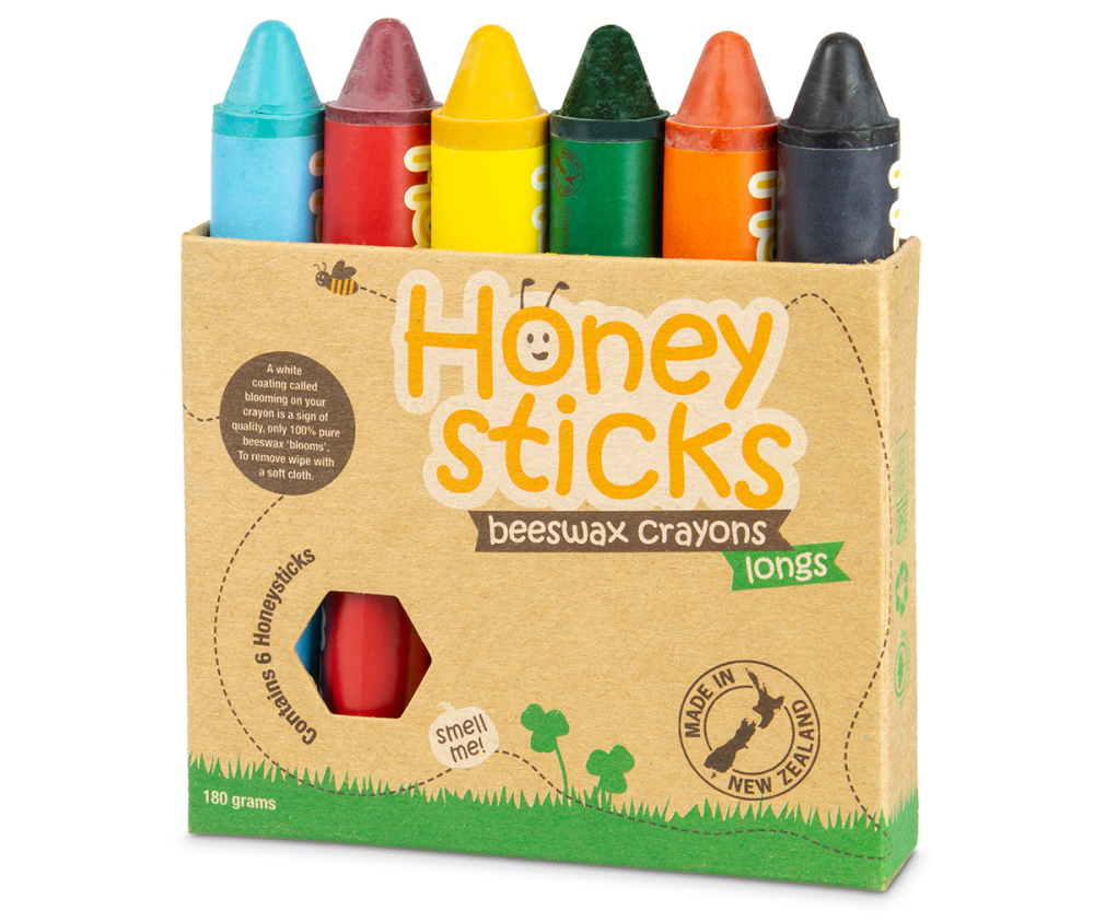Die original handgefertigten Bienenwachs-Malstifte von Honeysticks aus echtem Bienenwachs. 100% natürliche, ungiftige Inhaltsstoffe und Lebensmittelpigmente, sicher für Kinder und Kleinkinder ab 1 Jahr. Länge der Stifte ca. 10 cm