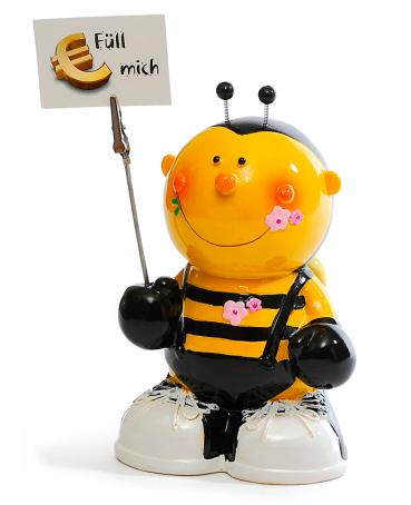 Bienen-Spardose "Max" mit Notizhalter und Münzschlitz einzeln verpackt Maß: 10 x 8 cm, Höhe: 15 cm