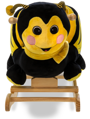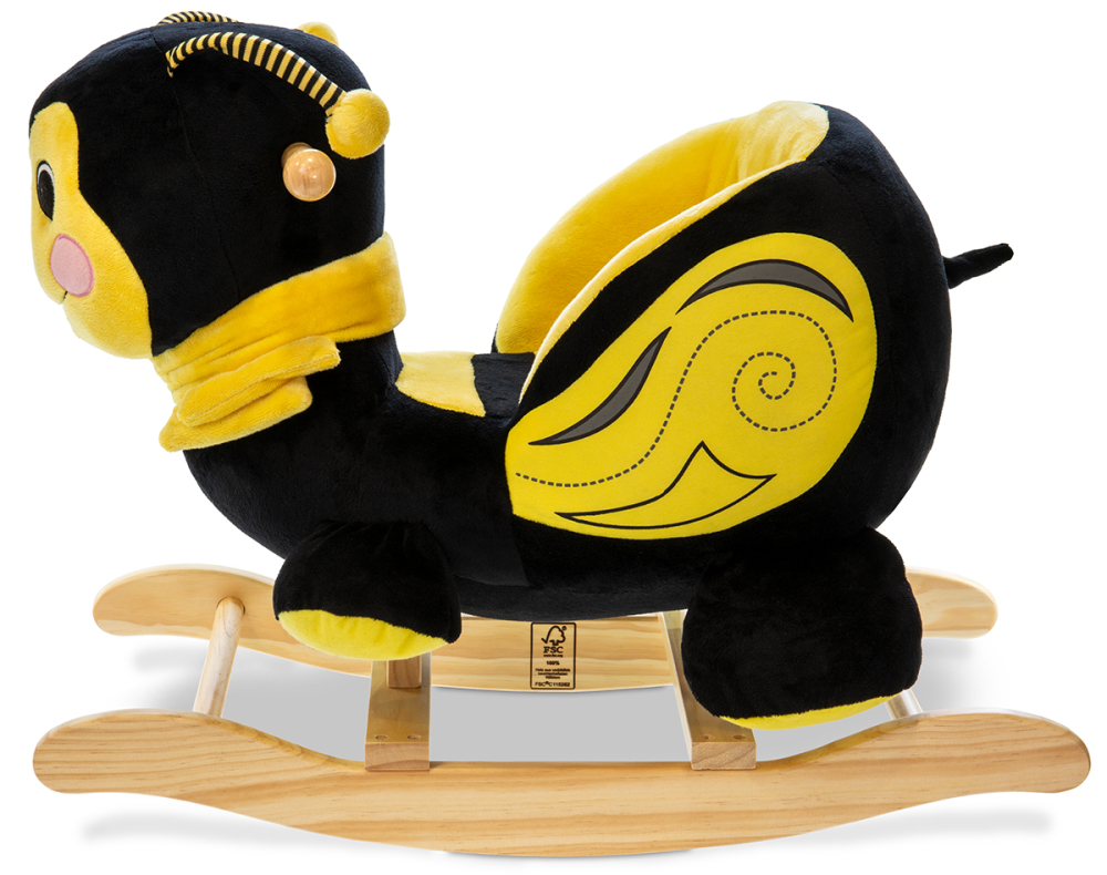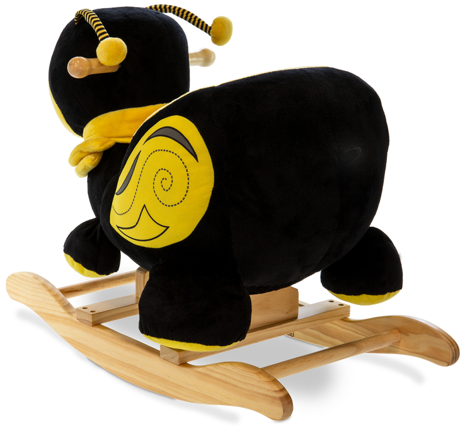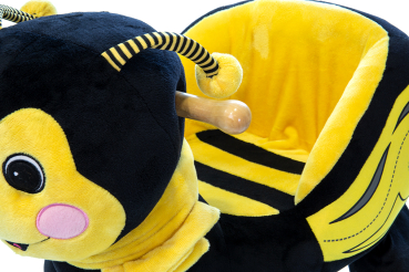 aus Soft-Plüsch mit robusten Holzkufen, großzügiger, gepolsterter Sitzschale und Holz-Handgriffen, empfohlen ab 18 Monaten Außenmaß: 64,5 x 36 cm, Höhe ca. 49 cm Sitzhöhe ca. 25 cm, Gewicht ca. 4,3 kg