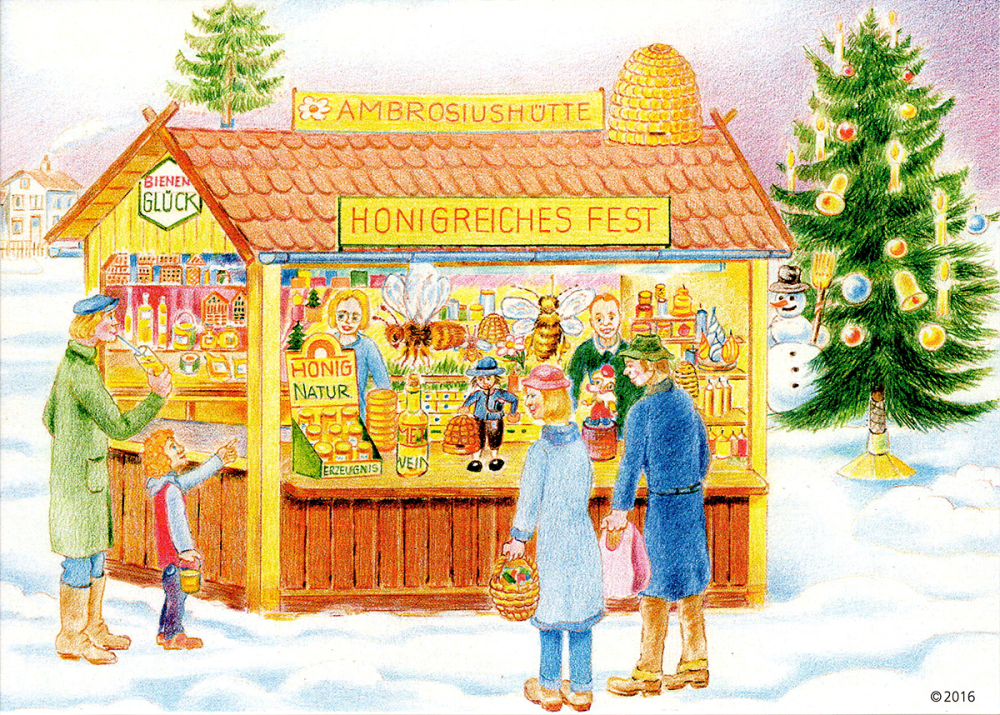 Postkarte "Imkerstand Weihnachtsmarkt"