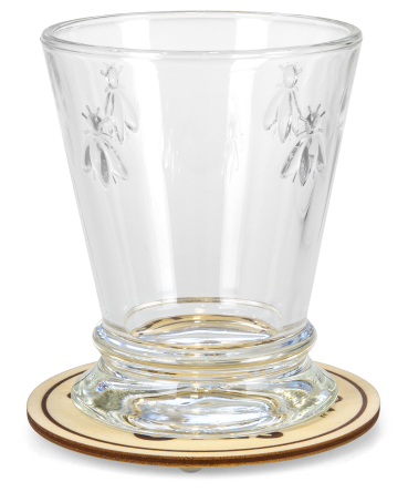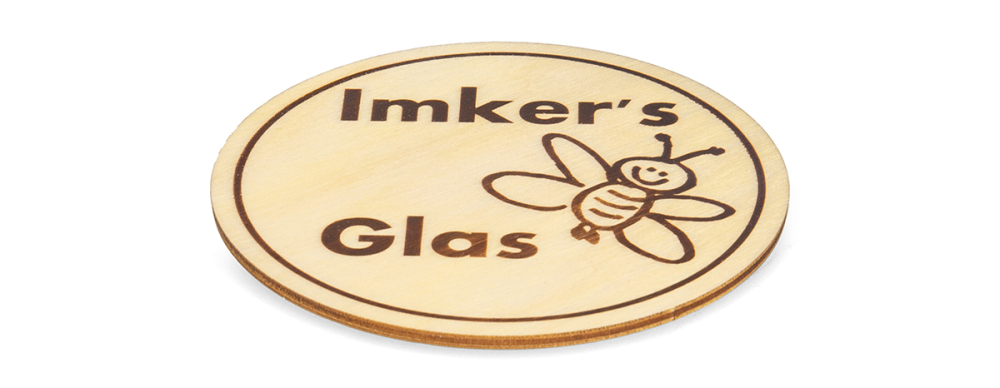 aus geöltem Holz mit eingebranntem Bienenmotiv und Antirutsch-Noppen