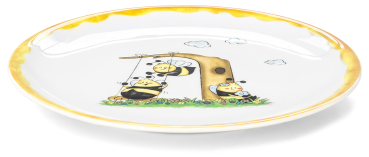 Speiseteller aus Porzellan mit Motiv "Fleißige Biene", spülmaschinenfest, ofenfest, mikrowellengeeignet. Ø ca. 25,5 cm Made in Germany