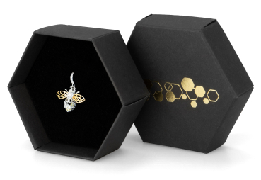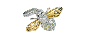 Bienenanhänger mit weißen Glitzersteinen für Ketten oder Armbänder. In schwarzer Waben-Schmuckschachtel, mit Schmucktüte Material: Silber 925 Anhängergröße ca. 2,5 x 1,5 cm