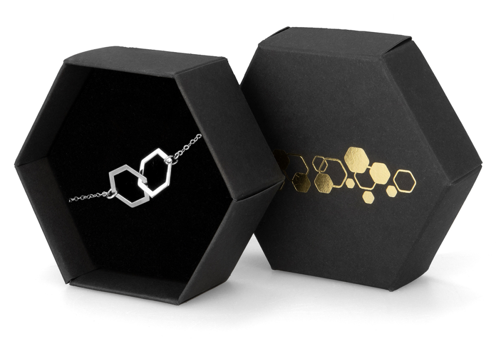 Wabenanhänger mit Armkette. In schwarzer Waben-Schmuckschachtel, mit Schmucktüte Material: Silber 925 Armkettenlänge bis ca. 23,5 cm Anhängergröße ca. 2,5 x 1,5 cm