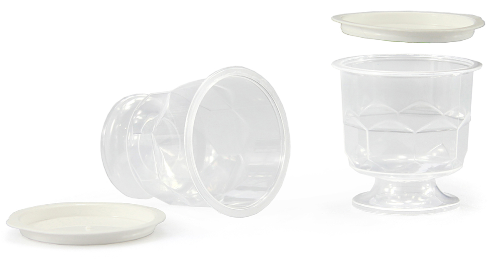 in Wabenform mit weißem Deckel Höhe 4 cm inklusive Fuß Preis pro Karton mit 1.000 Stück