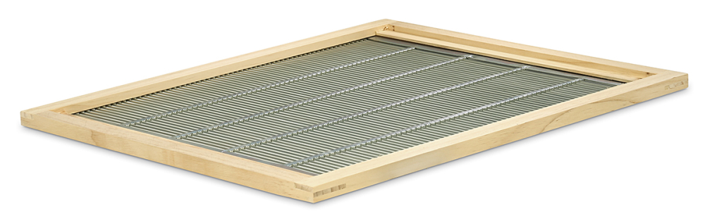 verzinktes Metall-Absperrgitter 400 x 400 mm, im Holzrahmen genietet und mit zwei Leisten vor Verrutschen gesichert, Außenmaß ca. 470 x 420 mm, Höhe 22 mm