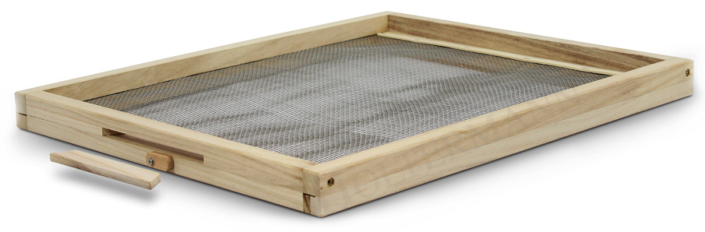 vereint Oberlüfter und Zwischenboden. Zum Aufsatz auf die Zargen, damit die Bienenvölker beim Wandern nicht verbrausen. Mit Edelstahl Lüftungsgitter und Rutschleisten. Zusätzlich mit verschließbarem Flugloch, zum Nutzen als Zwischenboden mit Rüsselkontakt. Höhe 3 cm, Gewicht ca. 1 kg