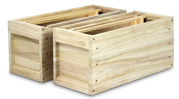 fügt man wie auf dem Bild zwei Vertikal Halbzargen zusammen, erhält man einen ganzen Honigraum.