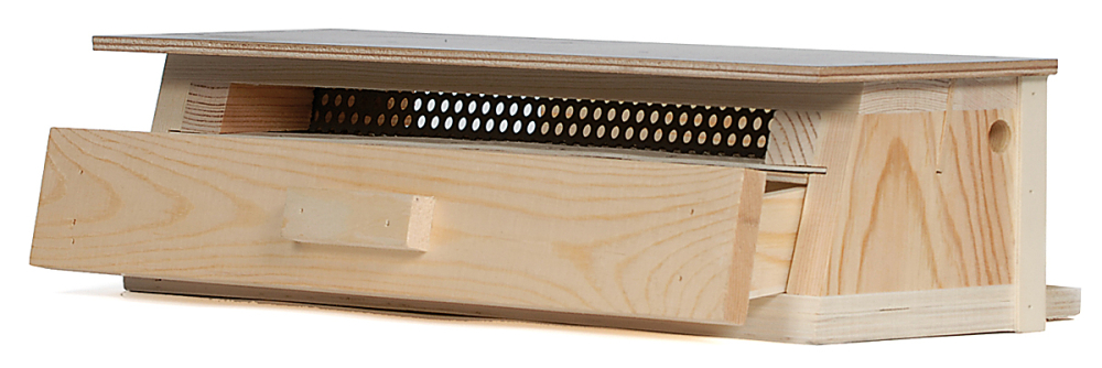 Fluglochvorsatz mit Pollenschale und seitlich herauszieh- barem Rundlochkamm, Größe 41,5 x 19 cm, Höhe 10,5 cm passend für Liebig Hochboden Art. Nr. 2804