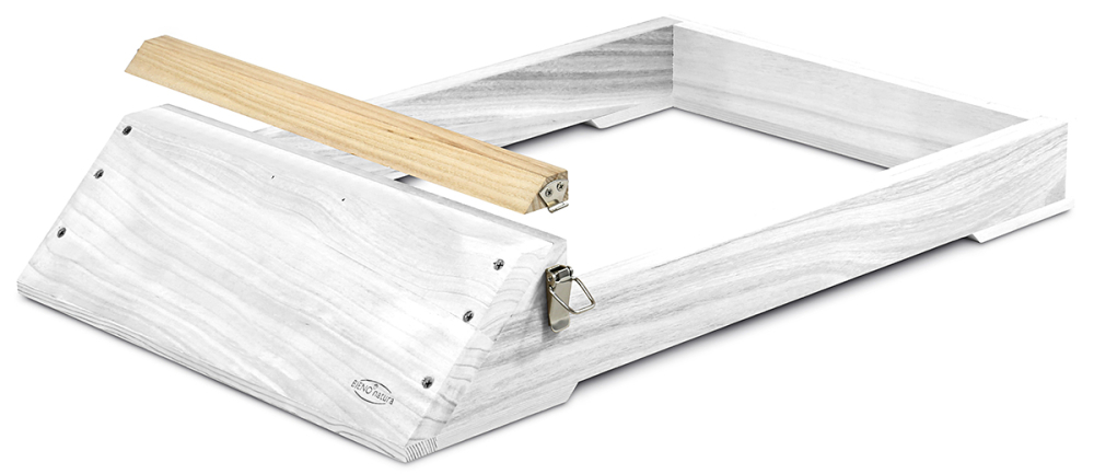 Adapter für den Liebig Beutenbock Art.-Nr. 2806 zur Verwendung mit dem Flachboden Art.-Nr. 2809. Die Lieferung erfolgt inkl. zwei Edelstahlscharnieren und Schrauben zur Befestigung Länge 42 cm, Höhe 2 cm