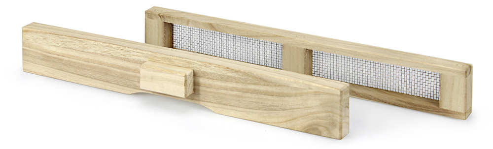 bestehend aus einer Frontklappe zum Einengen und Verschließen des Flugloches und einer Heckklappe mit Lüftungsgitter als Kontroll- und Arbeitsklappe Maße ca: 413 x 60 mm, 24 mm stark