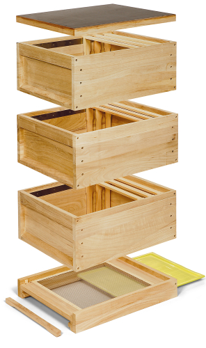 drei Ganzzargen für 12 Rähmchen DN mit montierten Edelstahl-Auflageschienen