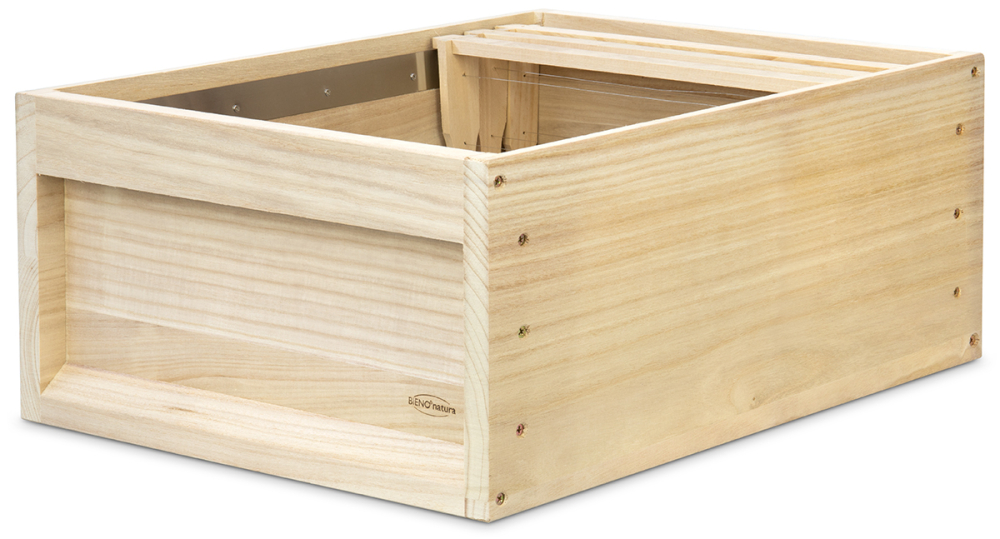 mit fest montierten Edelstahl-Auflageschienen für 12 Rähmchen Normalmaß von 394 x 223 mm