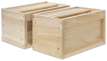 für 5 Rähmchen Normalmaß mit 394 x 223 mm. Werden zwei Vertikal Halbzargen nebeneinander zusammengeführt, erhält man einen ganzen Honigraum Höhe ca. 23 cm, Gewicht 1,8 kg