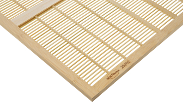 hergestellt aus 3 mm starken Bambus-Rundstäben mit einem Abstand von 4,2 mm, mittig eingefasst in einem 13 mm hohem Holzrahmen, Außenmaß ca. 509 x 509 mm