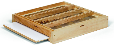 Dadant US 4er Ablegerboden mit 4 Fluglöchern. Durch Einsatz der Trennschiede können bis zu 4 Ableger in einer Zarge gebildet werden Höhe 8,5 cm, Gewicht ca. 3 kg